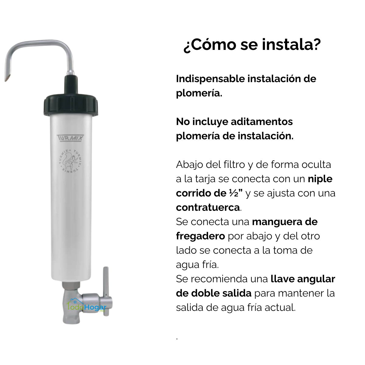 El filtro purificador modelo HK Doméstico o sobre tarja de la marca Turmix, requiere de plomería para su instalación, puede instalarse sobre una tarja de un fregadero o sobre una tubería.